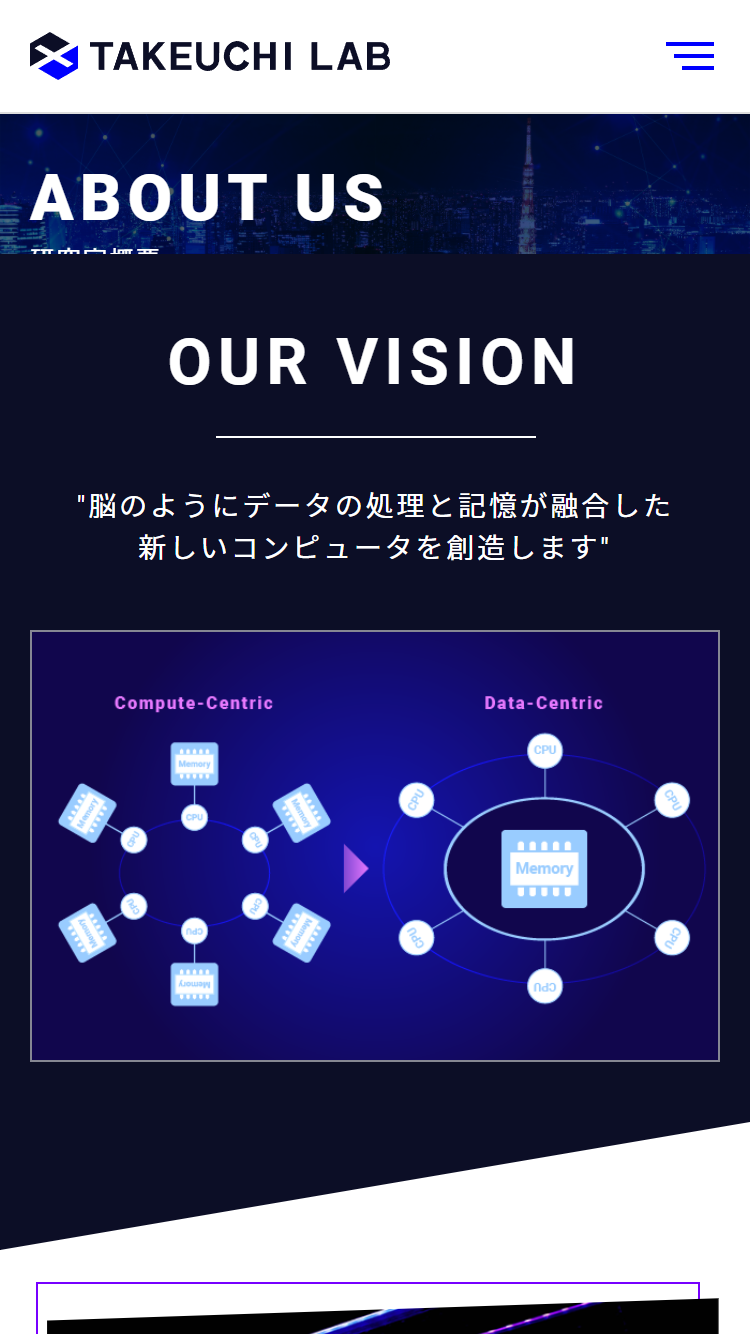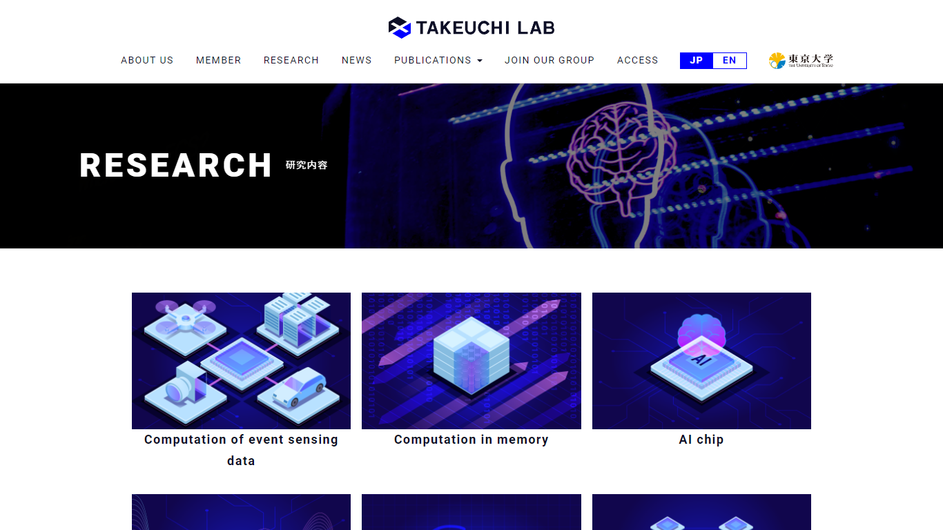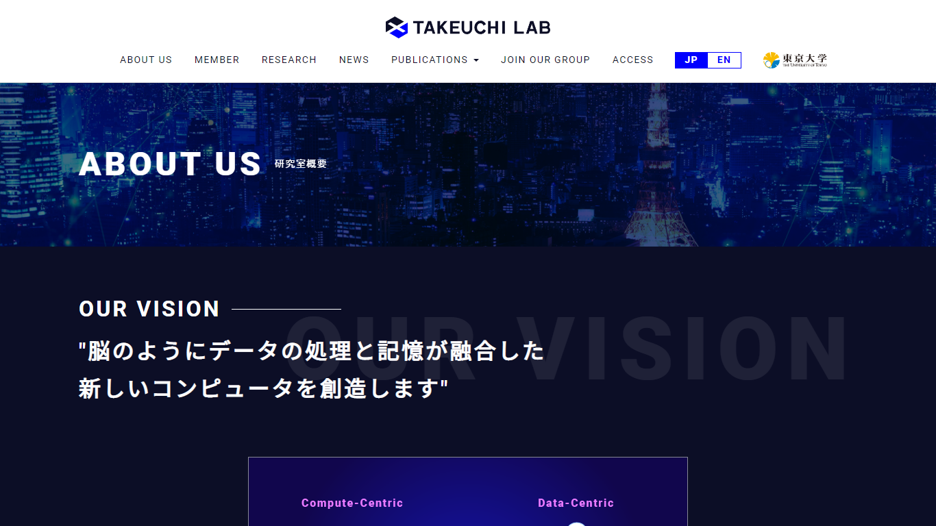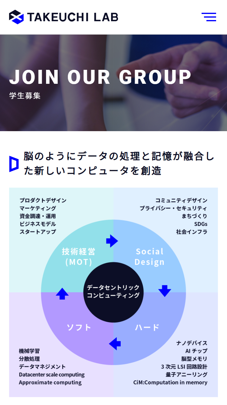 東京大学 竹内研究室のサイトを制作いたしました。分野を超えていくという意味を込めたロゴの制作から、サイト全体のデザインからWEB構築まで、一式担当いたしました。